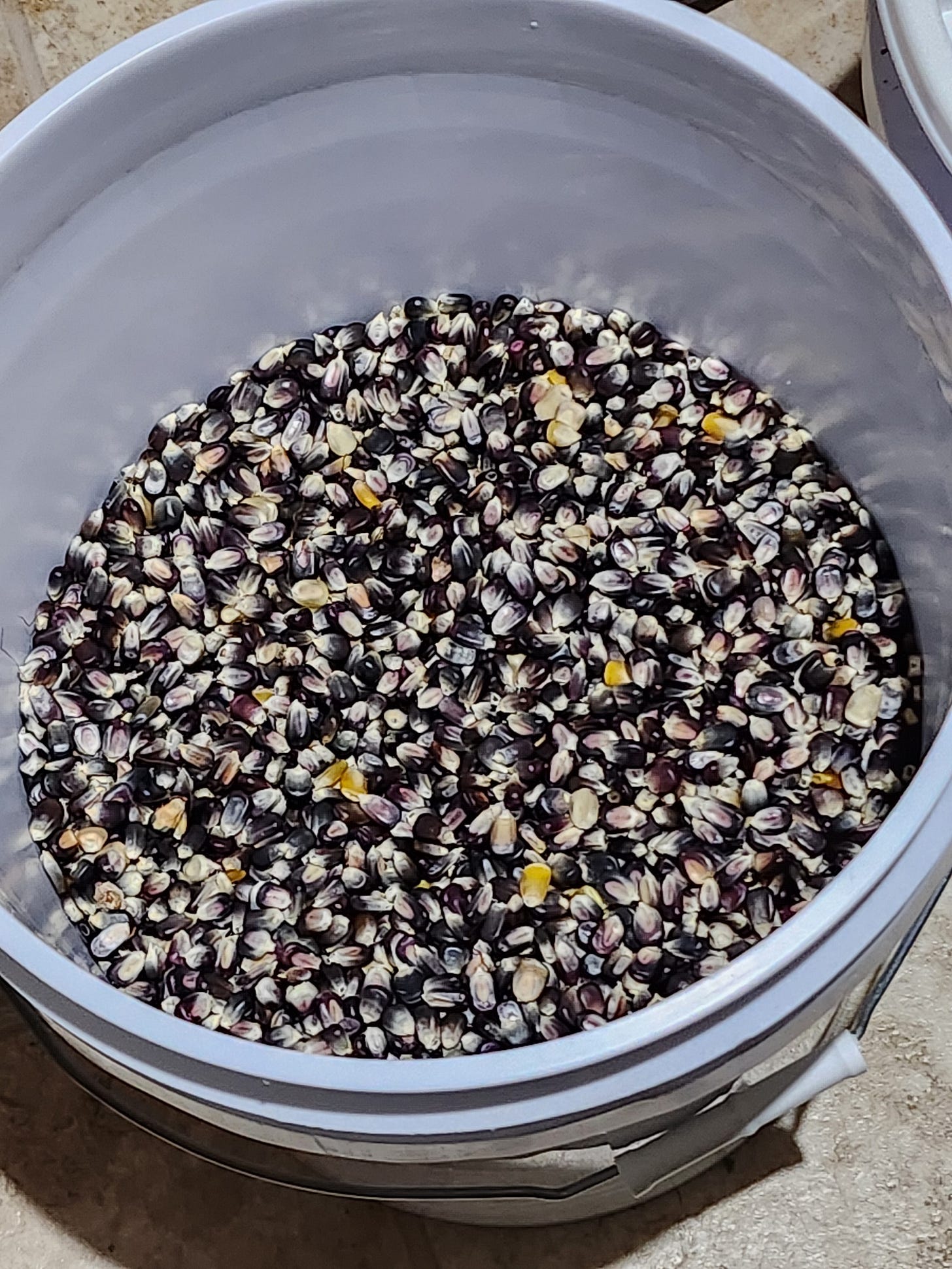 The deer hunting interlude over at the OBC patch allowed me to settle up with some “unfinished business” at the MMM corn patch oval at “Thor’s”. As was briefly discussed in my earlier essay about the initial harvest of the best leg of the MMM oval, the output the “purple” (actually just as much black as a purple seed coat color) was pretty much a disaster. I ended up with about half a 5-gallon bucket of shelled MMM for seed, and with some bags of 2023 grown corn, probably would recover about the same amount that we planted this year. I also ended up with less than half a bucket of “people quality” grain from better looking ears.